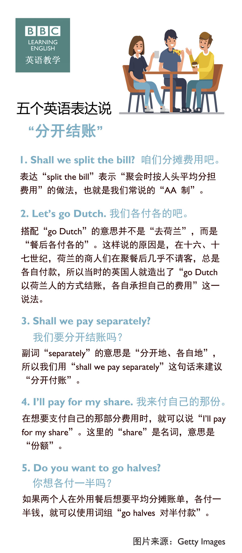 Bbc五个英语表达 怎样用英语说 分开结账