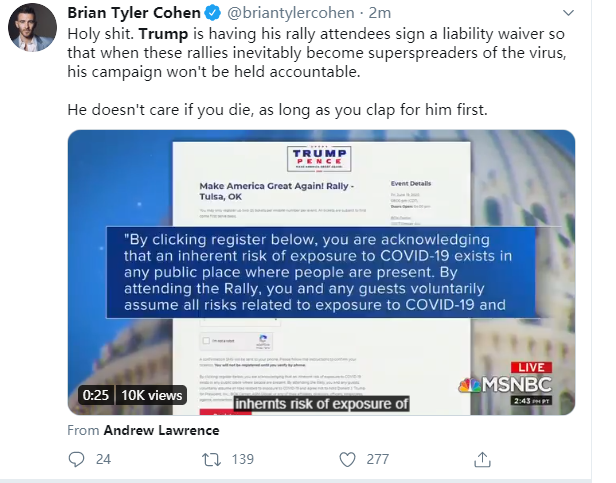 特朗普团队要求集会者签署免责条款 一旦得新冠 主办方概不负责